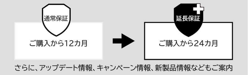 - 通常12カ月の保証期間を24カ月に延長いたします(延長保証対象製品については以下表の通りです)
